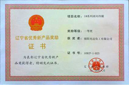 朝陽光達(dá)化工有限公司研發(fā)生產(chǎn)的專利產(chǎn)品—LM系列冰河冷媒榮獲遼寧省優(yōu)秀新產(chǎn)品!