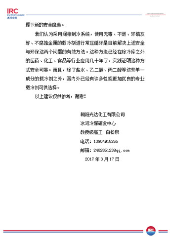 以上是我公司對《設計規范》提出的意見,同時也需要同行們的監督和幫助,歡迎廣大冷庫業主,工程商,上下游企業來電咨詢冰河冷媒載冷劑制冷系統!