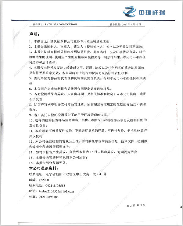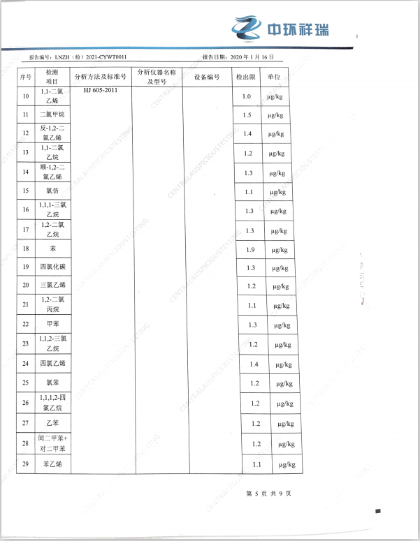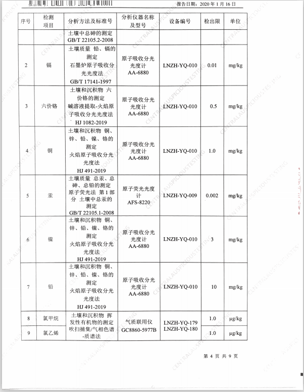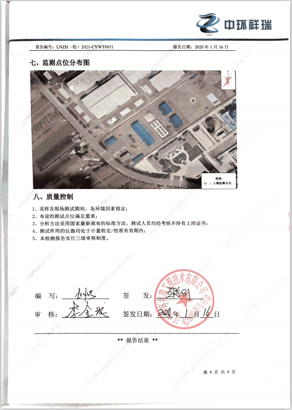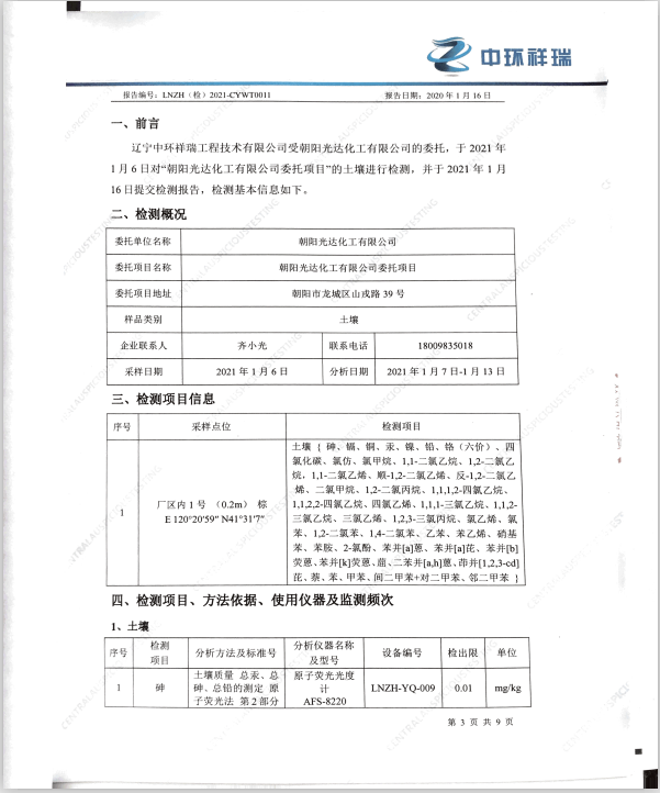 朝陽光達化工有限公司西廠區(qū)土壤檢測報告公示