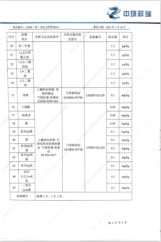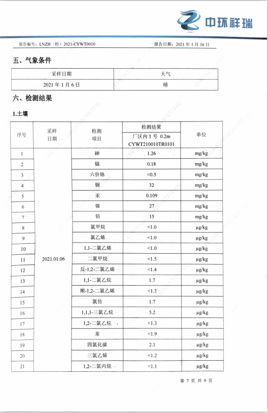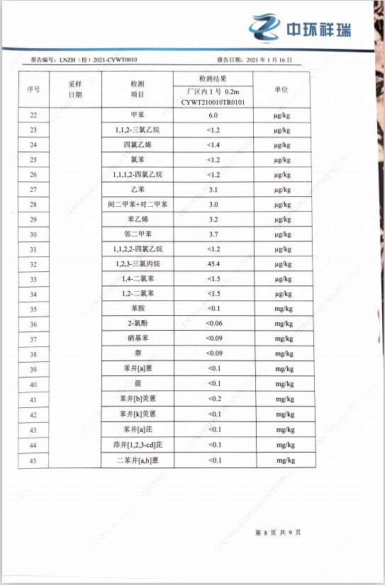 朝陽光達化工有限公司西廠區土壤檢測報告公示